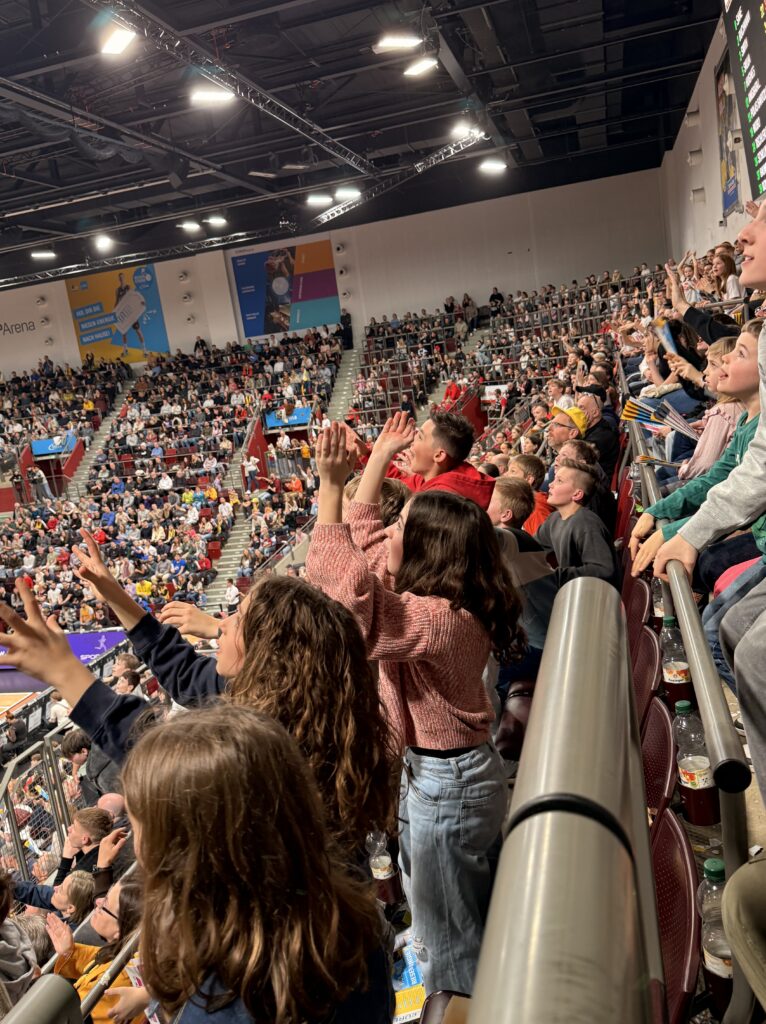 Am 07.02. durfte die Klasse 5a dank einer Kooperation mit den MHP Riesen Ludwigsburg ein ganz besonderes Erlebnis genießen: Sie wurde zu einem Spiel in die MHP Arena eingeladen. Auch wenn das Spiel gegen Bamberg leider verloren ging, war die Stimmung großartig. Die Klasse feuerte die Riesen durchgehend hochmotiviert mit lauten Klatschpappenschlägen an und sorgte für echte Fan-Atmosphäre in der Arena. Für die Schülerinnen und Schüler war der Besuch ein unvergessliches Ereignis. Schon jetzt freut sich die 5a sehr auf den nächsten Höhepunkt der Kooperation: den Besuch der MHP Riesen im Sportunterricht, bei dem die Profis die Klasse in einem Training in die Grundlagen des Basketballs einführen werden.