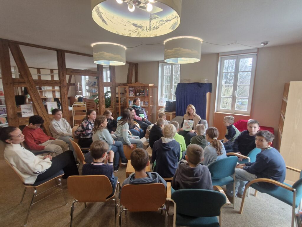 Am 11.12.2025 durfte die Klasse 5a die Stadtbücherei Großbottwar erkunden. Dort wurden die Schülerinnen und Schüler von der Leitung Daniela Kohlberger herzlich empfangen und bekamen anschaulich und spielerisch erklärt, wie eine Bücherei aufgebaut ist und welche vielfältigen Möglichkeiten sie bietet. Das Bücher-Battle und das Buch „der Bücherbus“ waren richtig cool. Besonders spannend war außerdem zu erfahren, was man in der Bücherei alles machen kann – weit über das reine Ausleihen von Büchern hinaus. Im Anschluss blieb noch ausreichend Zeit zum Schmökern und Stöbern, die von allen begeistert genutzt wurde. Der Besuch war für die Klasse eine tolle und lehrreiche Erfahrung.